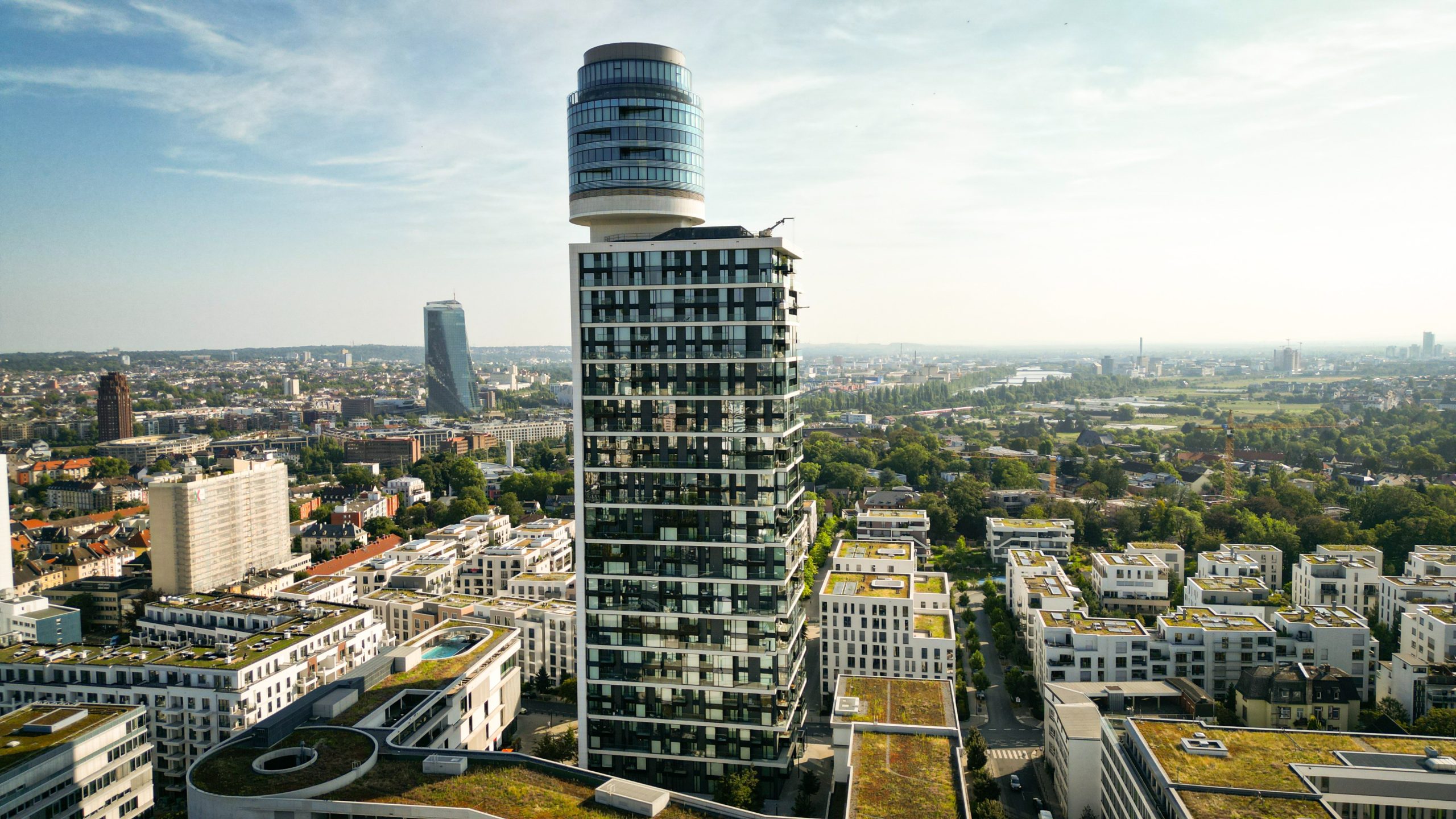 Henninger Turm Areal: Eine stadtbildprägende Verwandlung vom Wahrzeichen zum urbanen Wohn- und Lebensraum.