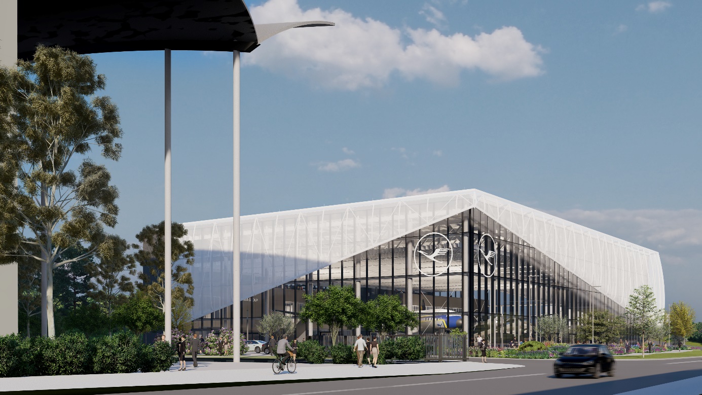 In direkter Nachbarschaft zum Lufthansa Aviation Center (LAC) hat die Lufthansa Group am Frankfurter Flughafen 2024 mit dem Bau eines neuen Konferenz- und Besucherzentrums begonnen, das ein Ort für neue Formen der Zusammenarbeit für die Mitarbeitenden und gleichzeitig für Kundinnen und Kunden, Geschäftspartnerinnen und -partner sowie Luftfahrtbegeisterte sein wird.